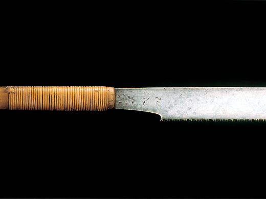 L'assistant de Kaneyuki Miyano (1901-1996) est nokogiri ** de Banshu Miki pour deux générations. J'ai aidé avec les affaires de 11 ans et ai supposé le nom de Maître d'assistant de Kaneyuki Miyano o comme un successeur pour deux générations en 1938. Je suis plein du talent de ** et on dit qu'il a dépassé la capacité du disciple pareil aîné immédiatement. J'ai protégé une technique traditionnelle ancienne partout dans la vie et suis concentré le pouvoir sur le fait d'introduire la technique dans la constitution de nouveau. Les deux scie de lames de la photographie a été forgée pour le chef, Yoshio Sasase de Kobe en 1954.