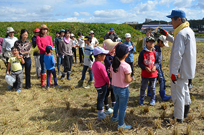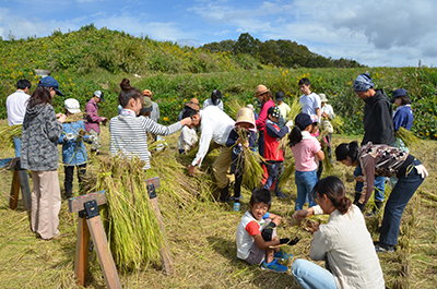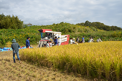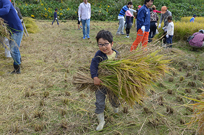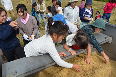 L'augmentation est un événement de collaboration avec Takenodai, Nishi-ku, École primaire de Kobe-shi notakenowaraya le projet. Dans le champ de riz où schoolchild primaire a planté du riz au printemps de cette année, le riz qui a grandi lourdement attendait le temps de la récolte dans le cadeau de la direction de directeurs en incluant Kanno du conférencier.