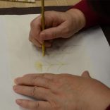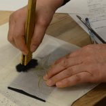 Je le localise avec la poudre jaune du dos de la trace du design et je le pousse avec une brosse et déplace le design dans une plaque. |
