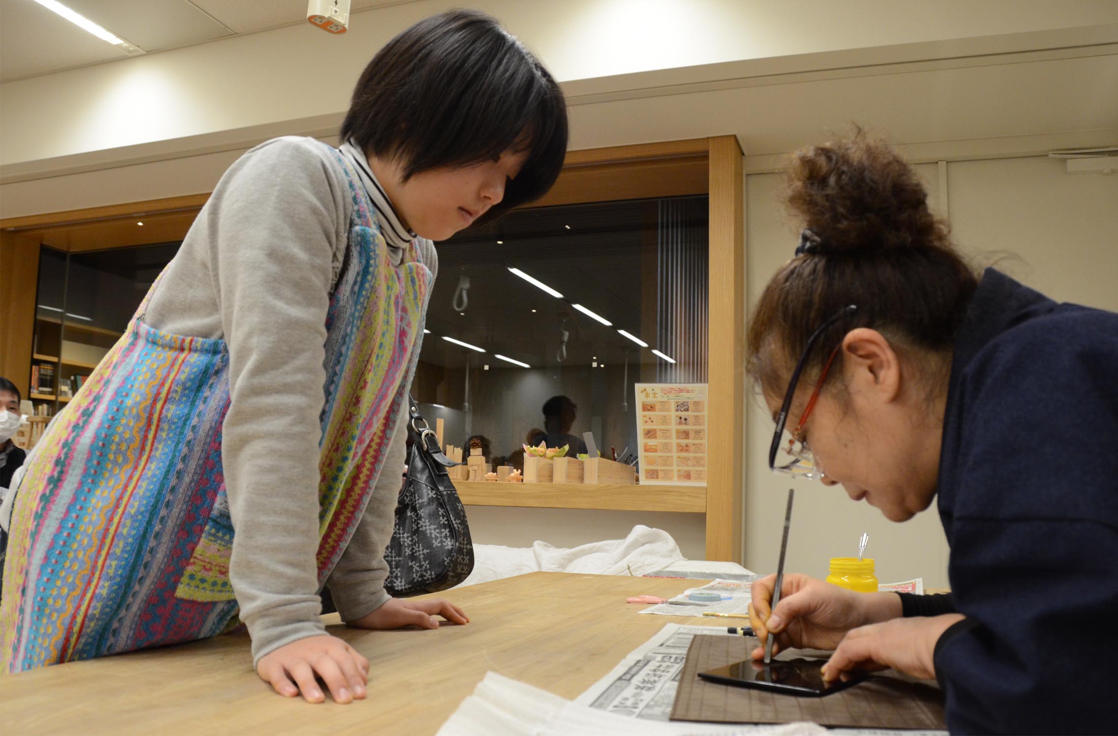 | Date et temps samedi, le 11 février 2017 10:00-12:00, 14:00-16:00 Pièce de menuiserie de Musée des outils de charpentier Takenaka de lieu Le conférencier Aiko Ishimoto, Norio Ishimoto (personne d'art de laque) On a tenu un atelier dans la commémoration de laque "d'exposition de plan l'hymne d'Aya - l'exposition d'art de laque d'Aiko Ishimoto -" l'exploitation. Le conférencier est Norio d'Aiko Ishimoto et du maître. |