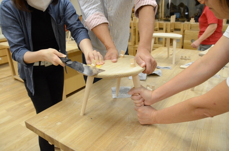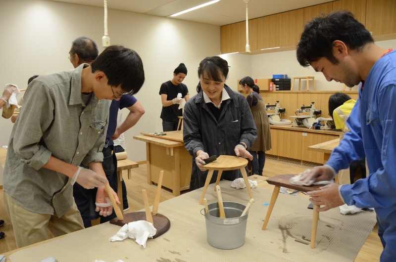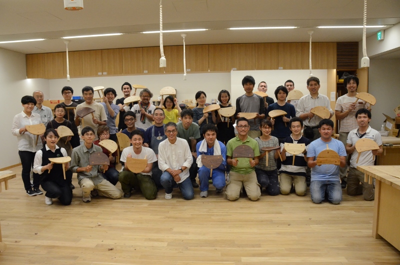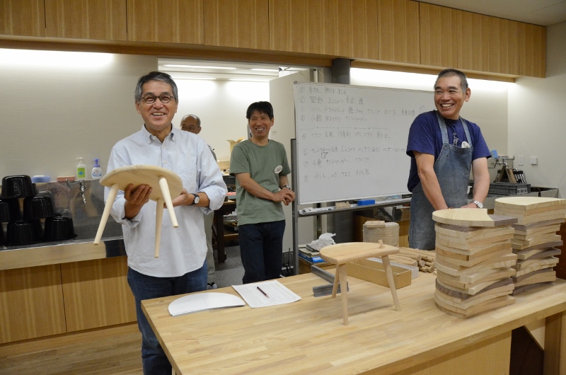 | Le conférencier est l'architecte, Yoshifumi Nakamura, l'ébéniste, Koji Yokoyama, Tadahiko Okuda. Au début, il y avait une origine, comment utiliser le tabouret de traite, le type de matériel, l'explication de la façon comment faire. | ![]() |