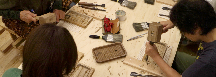 Je rends le plateau "Je le plateau de vallée" (wagatabon) du châtaigne simple fait avec moi Tanimura (Kaga-shi actuel, Ishikawa) qui a coulé dans le barrage pour la période de Showa. Je casse le rondin du châtaigne en tranches fines et, depuis la première période d'ère d'Edo, moi le plateau de Vallée qui ont été produits puisqu'un outil de la vie est le plateau simple que j'ai sculpté avec très peu d'outils tels qu'un ciseau de cercle ou le ciseau plat.