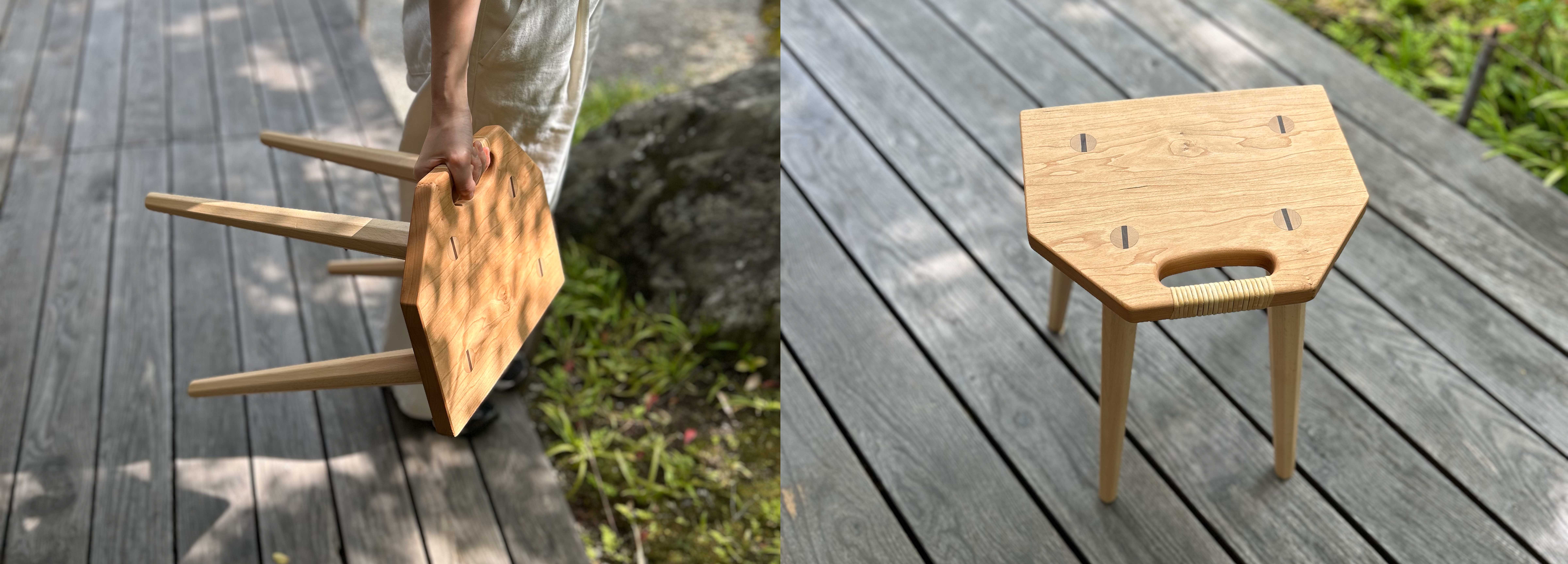 C'est le tabouret d'auteur de meubles, le design de Hiroshi Yamagiwa. Utilisez-le s'il vous plaît dans un endroit pour le porter d'un air détaché certainement puisque c'est la grandeur commode qui mettent la partie de poignée qui avait rattan serpentant pour la surface de rapport et aimer. (dans la surface de rapport, le matériel rouge cerise, le hêtre d'utilisation de jambe)