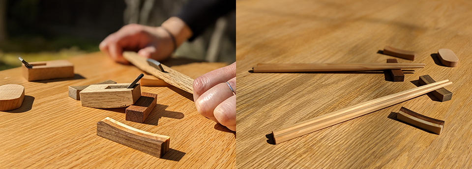 Je fais les baguettes du hinoki et du reste de baguette stratifié.