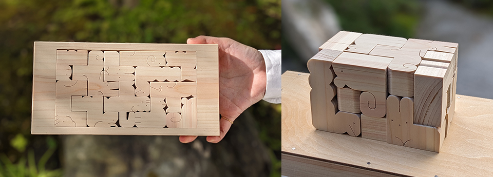 Je rends le puzzle tridimensionnel la qualité supérieure des briques d'auteur de briques, le design de Saburo Oguro avec un chaperon électrique a vu.