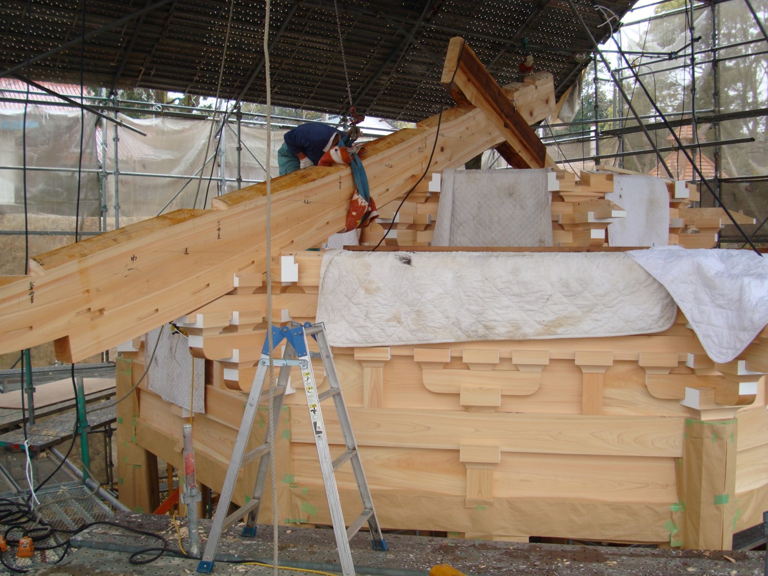 La raison de conservation de biens culturels et le devoir du gouvernement, l'entité publique locale est déclarée dans l'Article 3 de la Loi pour la Protection de Cultural Properties. Aussi bien qu'en construisant et la technique lui-même, je ne peux pas manquer l'existence de la forêt fournissant du bois qui est nécessaire pour eux pour supposer une telle conservation une chose réelle. Je l'introduis je me suis senti par un exemple de réparation si la longue forêt qui passe le temps et aborde un grand arbre de diamètre appelé 300 ans continue à jouer toujours le rôle depuis 200 ans.