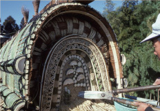 La toiture de peau hinoki est une technique particulière à notre pays empilant l'écorce du hinoki. Je m'approche dans l'art pour créer les courbes du toit élégant par l'écorce cueillie de Tachiki, la peau hinoki qui fait *zaitsu et a été traité, l'outil de l'artisan, un modèle de toit, un dessin de la grandeur de l'original. Le modèle de toit de la grandeur de l'original est d'habitude sur le bâtiment et c'est peut voir le toit où il y a rarement que je le vois entre autres choses dans le niveau de l'œil. Comme cela devient l'étalage puissant, le voir s'il vous plaît certainement.