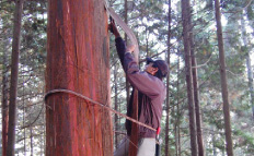 Un ongle en bambou est utilisé pour épingler la peau hinoki et la planche 杮. Le matériel, un outil, un dessin introduit une technique de la production d'ongle en bambou qui est devenue rare maintenant.
