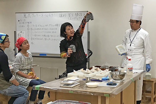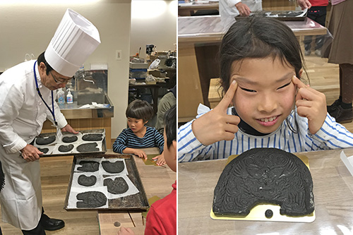 Dans la commémoration de "Je couvre une tuile dans l'iraka - les temps immémoriaux de 1,000 ans" l'exposition, j'ai tenu l'événement qui a rendu la tuile "la fin d'arête mini-" avec un biscuit. Le conférencier est Miyashita patissier d'Antenor de la confiserie de L'Ouest.