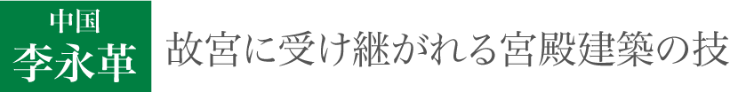 La Chine qui a tiré la culture de bâtiment de l'Asie de l'Est. Surtout, c'est la Ville Défendue de Pékin qui est fière de la meilleure échelle et du design. J'hérite le bâtiment dans le Musée de Palais national et, en ayant une organisation de réparation, transmets l'habileté des artisans qui ont construit la Ville Défendue dans maintenant. Ici, j'introduis un design, l'architecture qui a fait la Ville Défendue par le biais du travail de sumomoeikawashi qui s'est occupé de la réparation du bâtiment du vieux palais à partir des années 1970.
