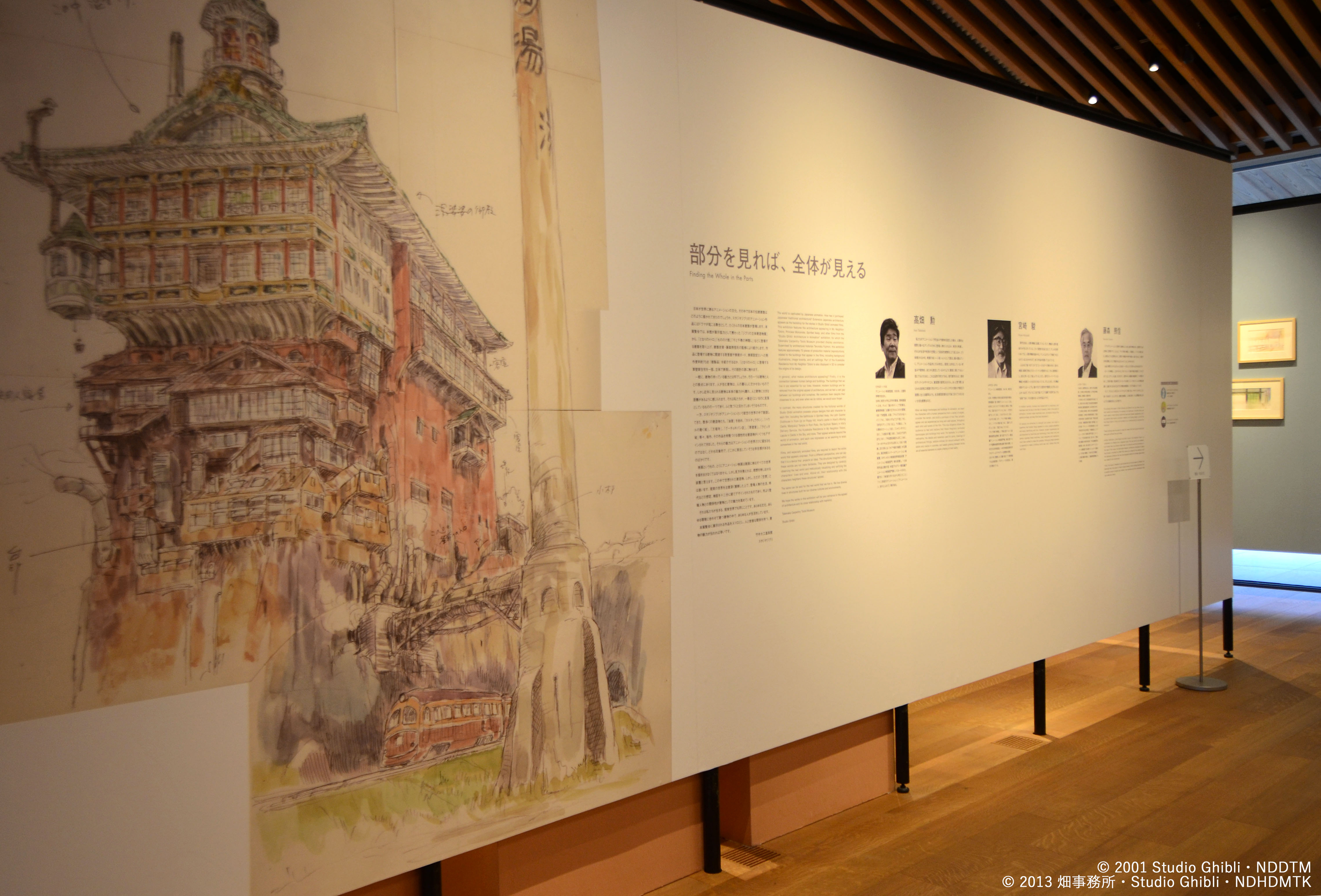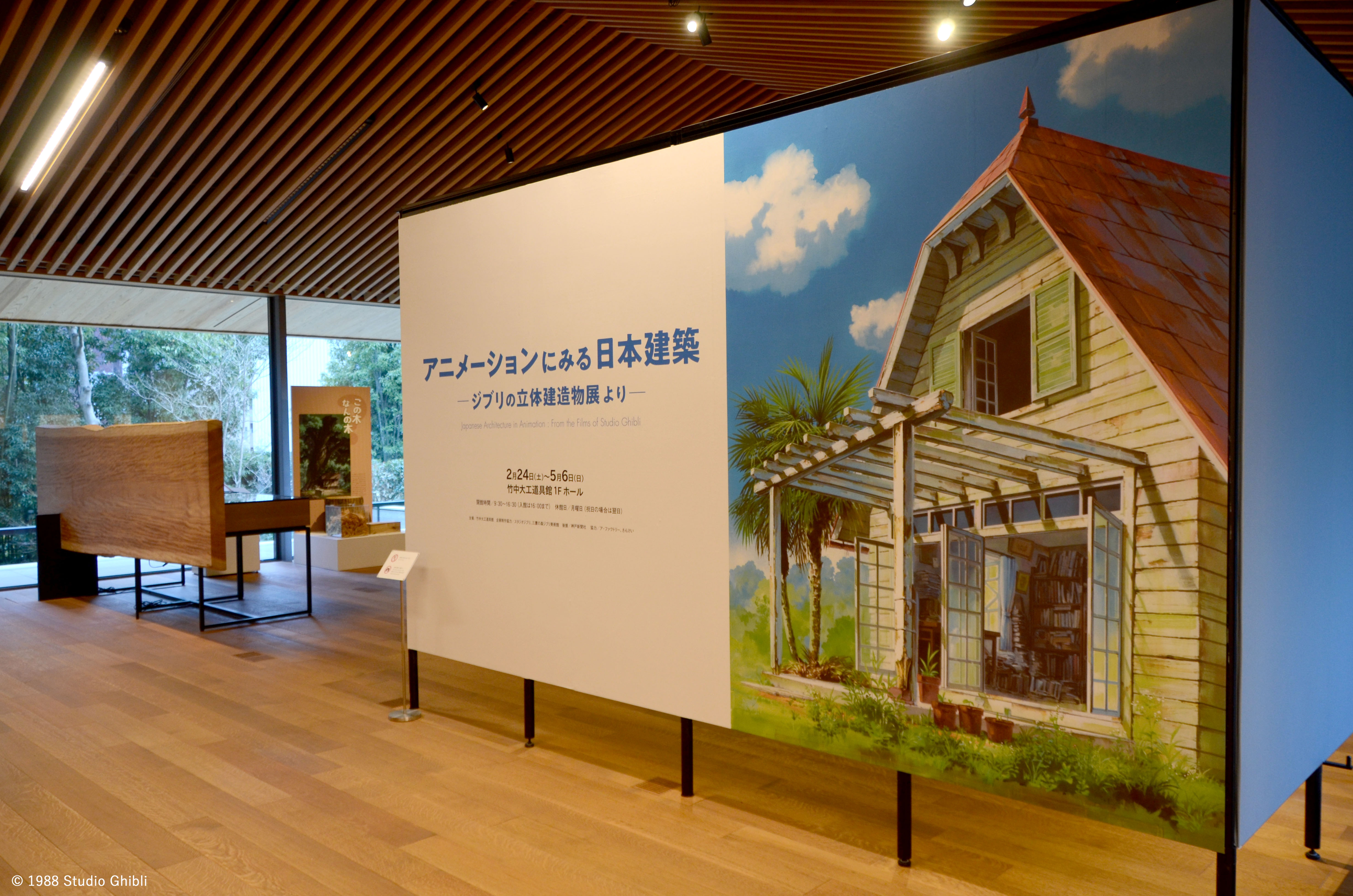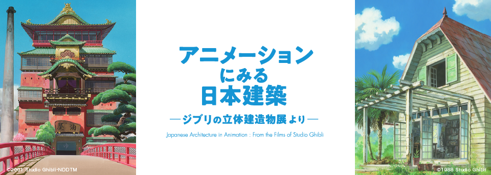 Puisque le stade qu'un drame arrive dans un travail d'animation de Studio Ghibli, beaucoup de bâtiments japonais se lève. Lors de cette exposition, je prends un bâtiment japonais me levant dans "Mon Voisin Totoro" "la princesse Mononoke" "Vive Loin" "d'une exposition de bâtiment tridimensionnelle de Ghibli" dans lequel le bâtiment principal a été retenu comme la coopération d'étalage et introduisez par la surveillance de construire historiographer, Terunobu Fujimori. Je libère une image de base et la planche d'art dans la conjonction avec le bâtiment me levant dans un travail, une matière de production (la reproduction) telle que le cadre d'art et c'est tridimensionnel et exprime la maison murale d'herbe apparaissant dans "Mon Voisin Totoro" et touche la source du design.