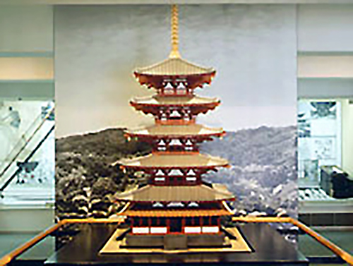 Enfin Ogawa que l'apprentissage a été permis a pensé à la réalisation de modèle de Temple Horyu-ji Cinq Pagode À étages pour l'étude pendant l'étude avec le chef de Nishioka. Un jour pour faire la nuit travaille quand j'ai trouvé un collègue et deux personnes, le temps du travail a continué depuis presque trois ans. L'échelle réduite prend les dimensions à chaque arbre de Classe des détails basés sur 1/20, un dessin mesuré au moment de la grande réparation de Showa fidèlement et il coche loin des moyens et est restitué précisément,