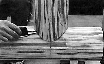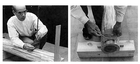 J'empaquette en haut une bande mince de bambou et je le contrôle des deux côtés et l'arrête. La partie de la bande mince de bambou est mobile et j'y permets de se conformer aux courbes telles que les sections du rondin et copier la forme et l'utiliser bien que je le déplace plus loin à d'autres aspects (cf. la photographie).
