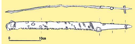 Il n'y a pas beaucoup de choses que le nombre de l'exhumation accroche la scie a enterré les affaires d'une société dans l'âge de Tumulus par le tombeau ancien dans l'ère de Kamakura de la diminution, Asuka, l'ère de Nara quand la construction de tombeau ancienne diminue et exister. Tous points peu clairs ont beaucoup de sorts de choses sous la forme dont la forme que la scie existante est spécifique était, mais on croit que j'upsize en comparaison avec la période précédente et ai fait finir une forme environ comme un outil pour la menuiserie. Surtout, le Temple de Horyu-ji offrant le trésor a vu est la scie la plus vieille pour un produit s'étendant et le corps de scie est endommagé en partie, mais quittez complètement une poignée d'arbre ; est de valeur.