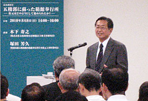 Un conférencier : Toshiyuki Kinoshita (siège d'association de plan de conservation de biens culturels de scientifique de chef d'honneur)